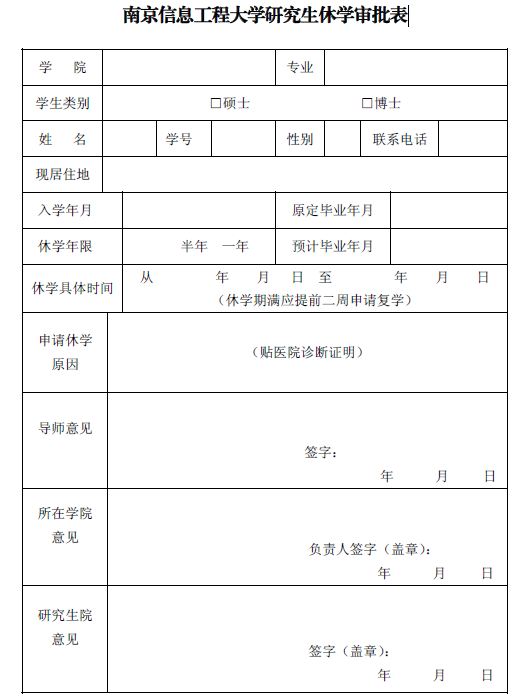 南京信息工程大学研究生(博士、硕士)缓考申请表