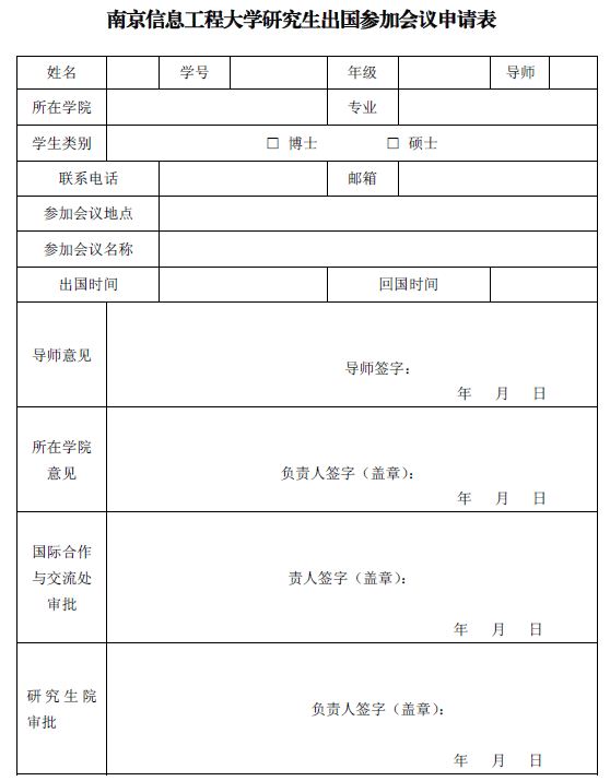 南京信息工程大学研究生出国参加会议申请表