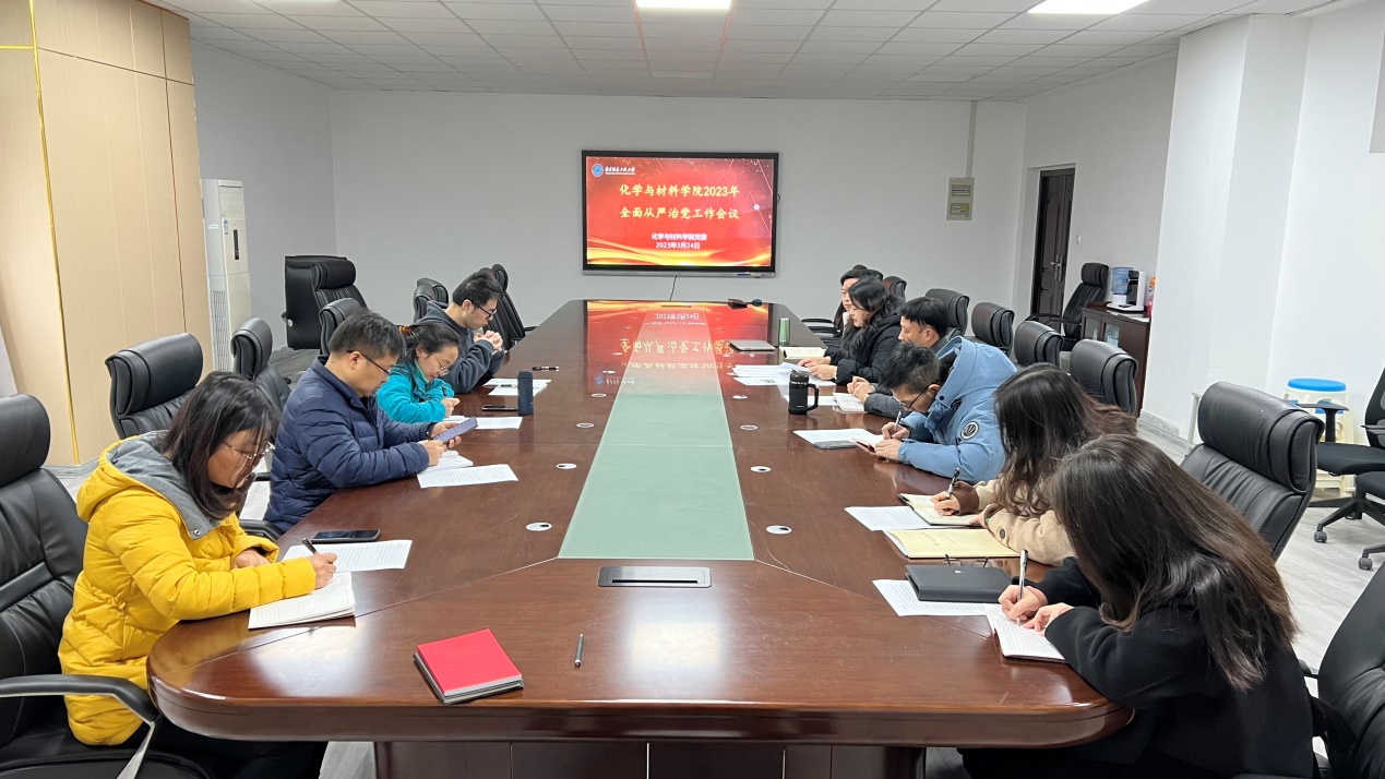 落实全面从严治党要求、加强党风廉政建设324日上午,化学与材料学院在逸夫楼S204会议室召开全面从严治党工作会议。学院副院长(主持工作)耿东生、学院党委委员、院长助理、系主任、两办主任参加会议,会议由学院党委书记杨春艳主持。