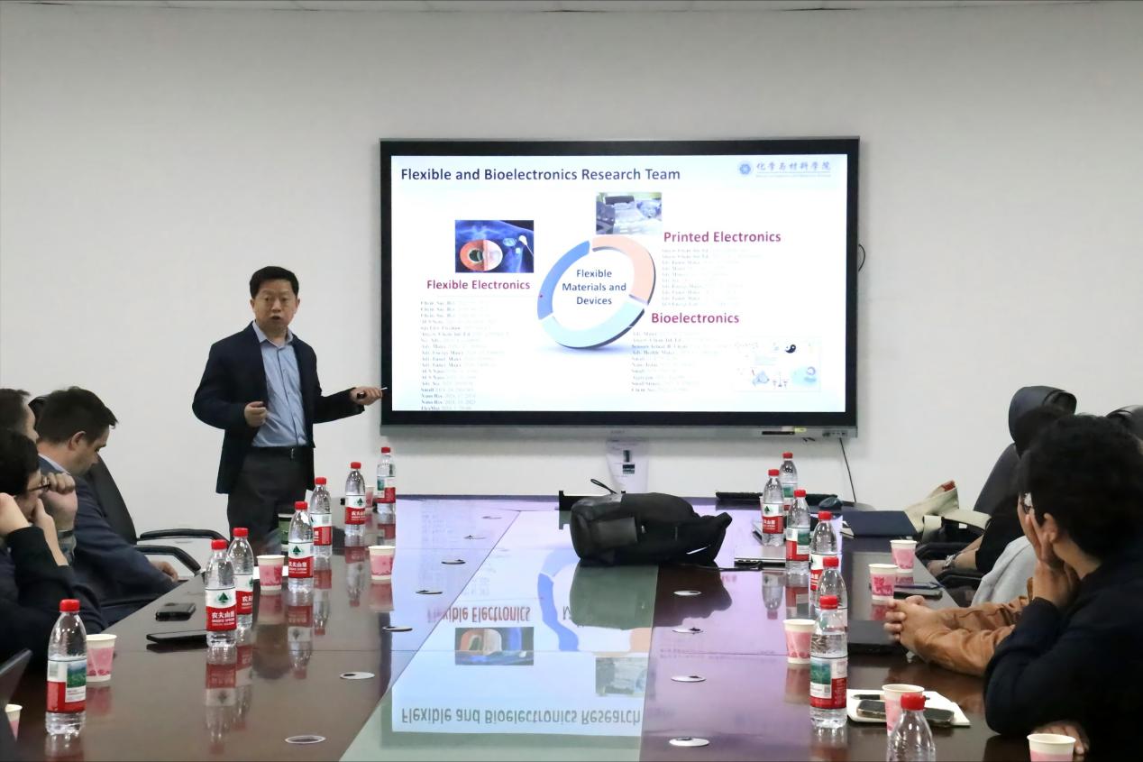 学术交流环节,学院教师代表张一洲、邵高峰、朱冬冬、袁浩波等依次发言,分别就新能源器件、柔性电子材料等国际前沿领域,分享了各自团队最新的研究进展。由学院共建的“新能源器件与界面科学江苏高校重点实验室创新成果转化基地”邀请了外籍专家顾问——加拿大蒙特利尔大学Xuan Truong Duong教授进行了工作进展分享。最后由法国滨海大学的Carmen Ciotonea教授为在场师生带来了一场内容丰富的专题学术报告,分享了其团队在相关领域的研究发现。