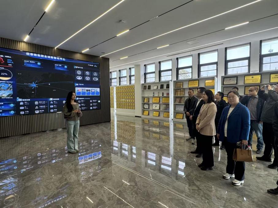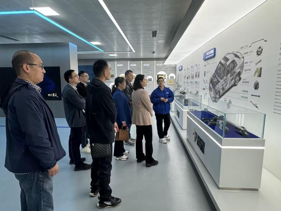 活动首站,化材院一行来到淮安高新区规划展览馆,详细了解了高新区的发展历程、产业布局与未来规划。随后,团队前往中天钢铁集团(淮安)新材料有限公司,实地观摩了现代化钢铁新材料的生产流程与技术应用,并就学生就业、材料研发、绿色制造等与企业进行了深入交流。紧接着,团队走访了江苏纽泰格科技集团股份有限公司,在公司展厅,详细了解了其智能化产品和在轻量化材料与汽车零部件领域的创新成果,企业的党建创新、快速发展等引起了师生们的广泛兴趣。双方就人才培养、新材料开发等方面展开了热烈讨论。