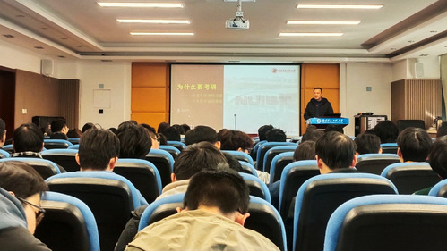 首先,奚桂华以“为什么要考研?”为主题,从“考研的优势”“考研的挑战”“考研的可行性”以及“考研的深远意义”四个方面展开分享。他结合自身的学习与工作经历指出,考研不仅是提升专业能力、适应社会高质量发展需求的战略选择,更是一次探索自我潜能、突破人生发展瓶颈,从而拥抱未来无限可能的重要机遇。奚桂华希望23级的同学们吃苦在前,正视困难,坚定信心,放手一搏,以长远眼光规划未来人生。