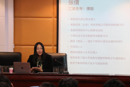 讲座中,张倩围绕从国企到创业的野生职场之路这一主题,结合个人鲜活经历展开分享。她娓娓道来,从南信大求学到国企就职,再从全职妈妈期间远程运营集智俱乐部,直至创办集智学园——一段从公益学术社区走向AI教育平台的转型历程。通过《深度学习原理与Pytorch实战》的编写案例及跨学科科普项目的生动介绍,她层层拆解了将复杂技术转化为大众认知的有效路径,并分享了如何在创业中平衡商业与公益、借生活化案例诠释人工智能的宝贵经验。张倩身上那股敢于突破、勇于创业的精神,深深感染了在场师生,她的经历也为学子们的成长之路注入了丰厚的启示。