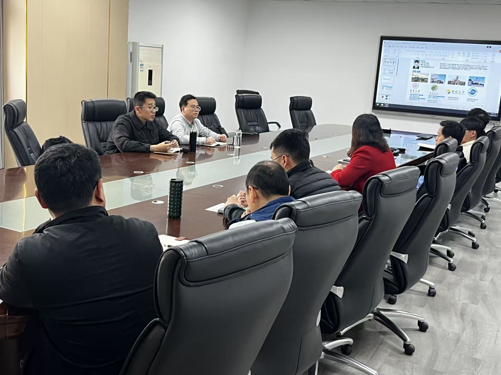 学院骨干教师陆续分享了各自团队的最新研究成果。袁浩波博士介绍了高分子薄膜材料的研究进展;陈高教授围绕能源材料与器件团队,详细讲解了可再生能源驱动的海水淡化和电解制氢集成系统的产业化落地方案;江凡副教授展示了环境防护与功能材料团队在金属防护涂层领域取得的成果;朱国银副教授对生物与柔性电子研究团队进行了介绍,并重点分享了水系锌电池方面的代表性成果。