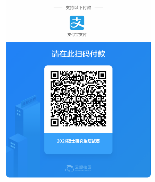 进入调剂复试的考生须缴纳复试费80元,请扫描以下二维码,如实填写本人信息后于202641024:00前完成支付。