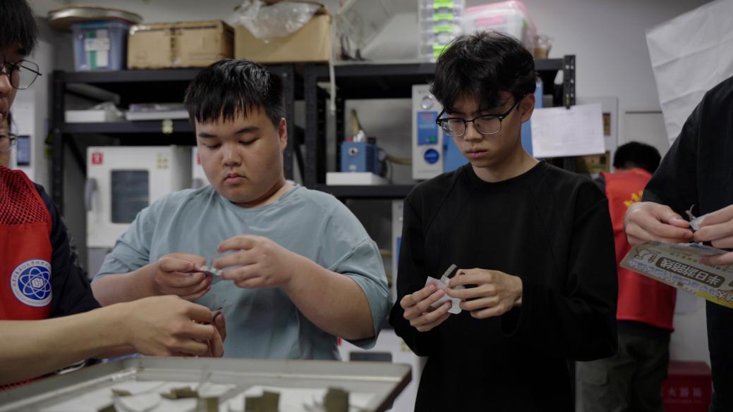 实验室打卡环节,同学们有序走进学院科研实验室,在研究生志愿者指导下参与吸波材料制备、电池组装、激光雕刻等互动体验。许多教职工子女也在家长陪同下积极参与,对各种实验过程、实验现象表现出浓厚兴趣,大家对化学与材料学科有了更直观的认识。活动当天还设置了安全知识问答、成果展柜参观、调查问卷等任务。一楼大厅的化学小游戏区提供手工制作、模型拼装、知识问答等趣味项目,吸引众多同学和小朋友参与。现场还设有竞赛成果分享区与优秀学生经验交流区,多位同学分享了专业类赛事的备赛与答辩心得。整体活动内容丰富多样,充分调动了参与者的积极性。